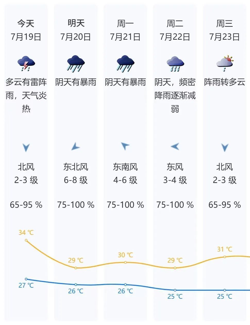 【今日天气】多云间晴天,间中有雷阵雨,雷雨时最大短时阵风8级左右,气温27-34℃。